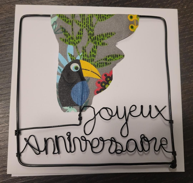 Carte et enveloppe fil alu et tissu
